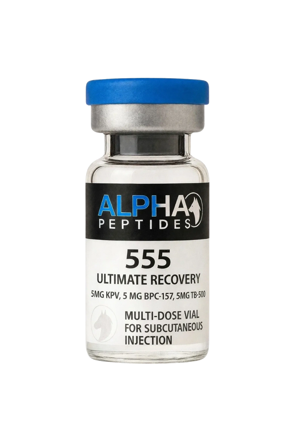 The 555 Blend combines three of the most powerful healing and anti-inflammatory peptides — KPV, BPC-157, and TB-500 — each dosed at 5mg.